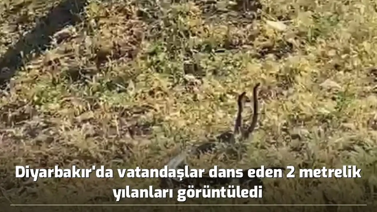 Kocaköy ilçesi Kokulupınar Mahallesi’nde vatandaşlar, yaklaşık 2 metre boyunda iki siyah yılanla karşılaştı. Yılanların birbirine sarılı şekilde ilerlediğini gören vatandaşlar, o anları cep telefonu kamerasıyla görüntüledi. Yılanlar, bir süre dans ettikten sonra arazide gözden kayboldu.
