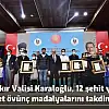 Vali Karaloğlu konuşmasının ardından, Cumhurbaşkanı tarafından tevcih edilen Devlet Övünç Madalyalarını şehitlerin yakınlarına takdim etti.