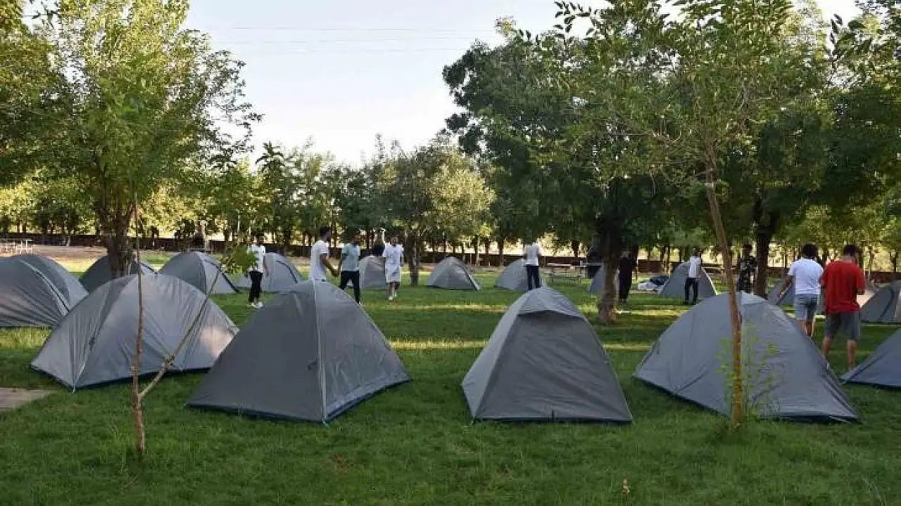 Diyarbakır Büyükşehir Belediyesi, Karaköprü Fidanlık Alanı'nda 12-17 yaş arası çocuklar için kamp alanı oluşturdu.