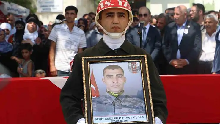 Irak'ın Kuzeyindeki Pençe-Kilit Operasyonu bölgesinde 2 gün önce teröristlerin açtığı taciz ateşi sonucu şehit olan 6 askerden Piyade Sözleşmeli Er Mahmut Üçdağ'ın cenazesi memleketi Diyarbakır'da son yolculuğuna uğurlandı.