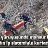 Doğa yürüyüşünde mahsur kalan kadın ip sistemiyle kurtarıldı