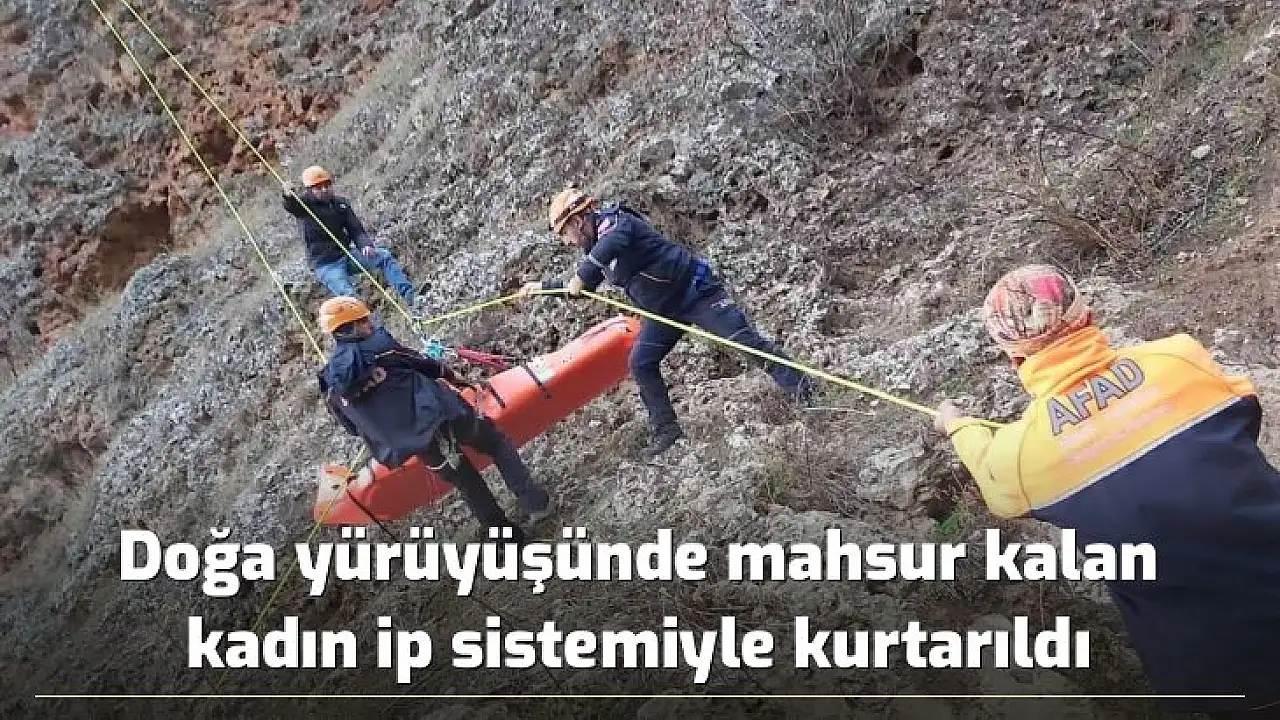 - Doğa yürüyüşünde mahsur kalan kadın ip sistemiyle kurtarıldı
