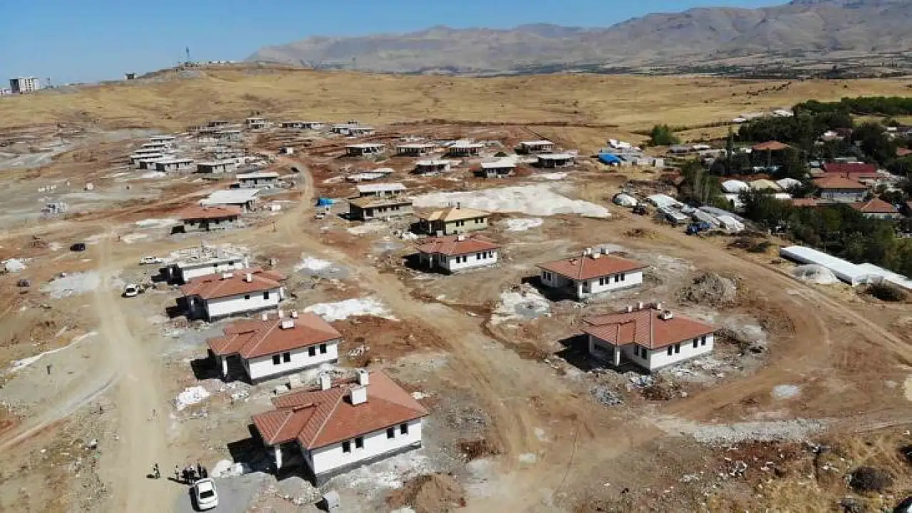 Asrın felaketinde büyük yıkıma uğrayan Malatya'nın Doğanşehir ilçesinde Toplu Konut İdaresince (TOKİ) tarafından afetzedeler için yapılan köy tipi konutların yapımı devam ediyor.