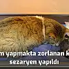 Doğum yapmakta zorlanan kediye sezaryen yapıldı