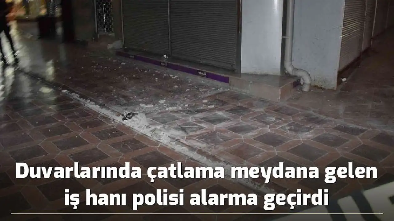 Duvarlarında çatlama meydana gelen iş hanı polisi alarma geçirdi