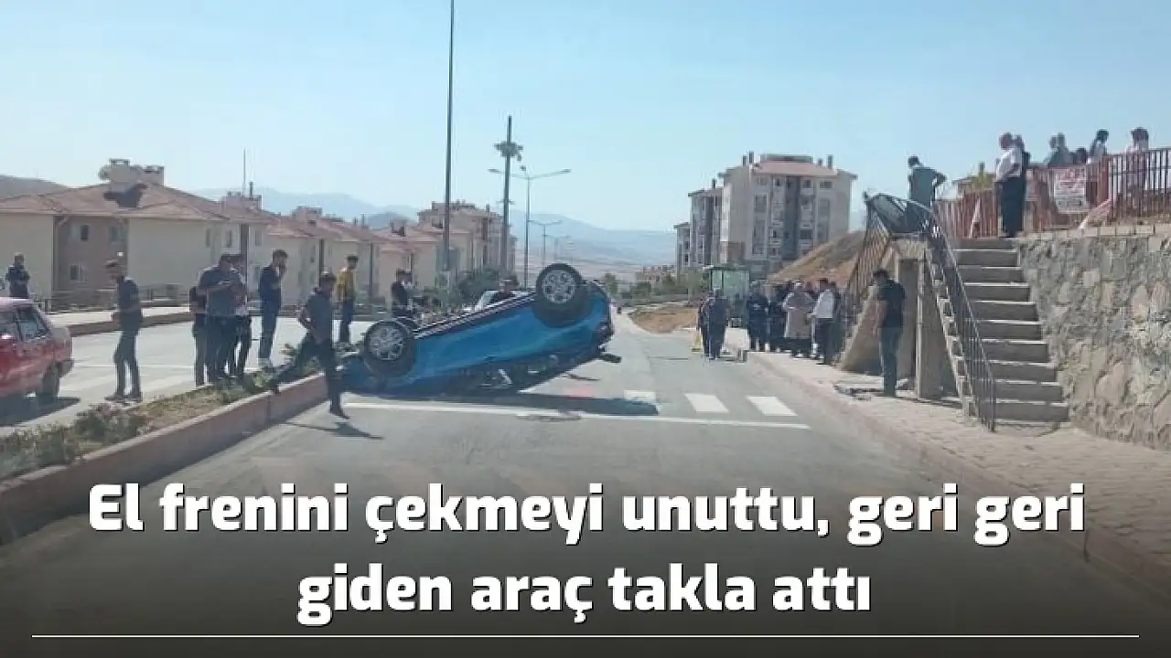 Elazığ’da bir kişi, aracını rampa aşağı park etti. El frenini çekilmeyen ve geri giden araç, takla atarak durabildi.