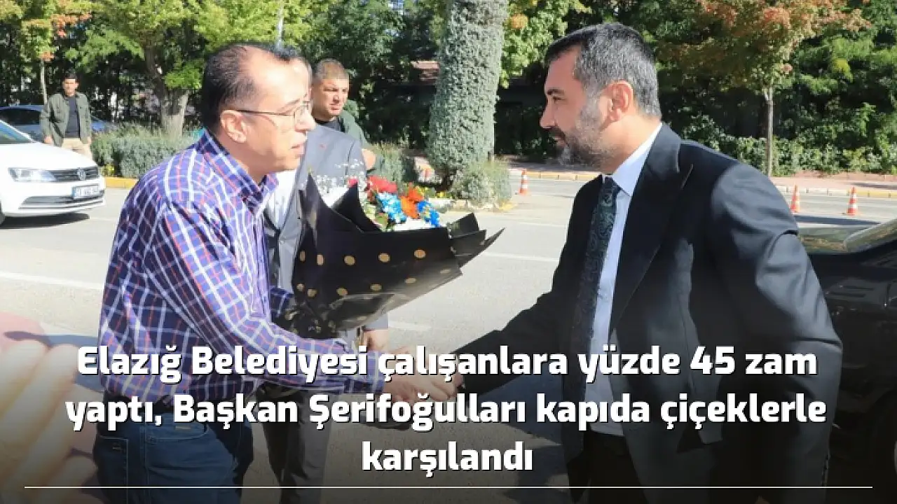 - Elazığ Belediyesi çalışanlara yüzde 45 zam yaptı, Başkan Şerifoğulları kapıda çiçeklerle karşılandı