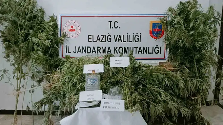 Elazığ'da jandarma ekipleri tarafından yapılan çalışmada 186 kök kenevir ele geçirilirken 2 şüpheli ise yakalandı.