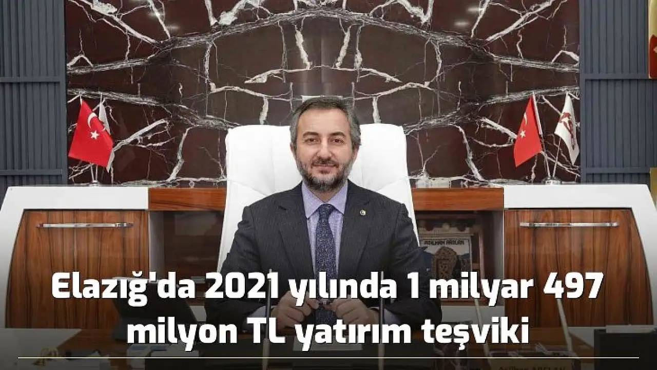 Elazığ'da 2021 yılında 1 milyar 497 milyon TL yatırım teşviki