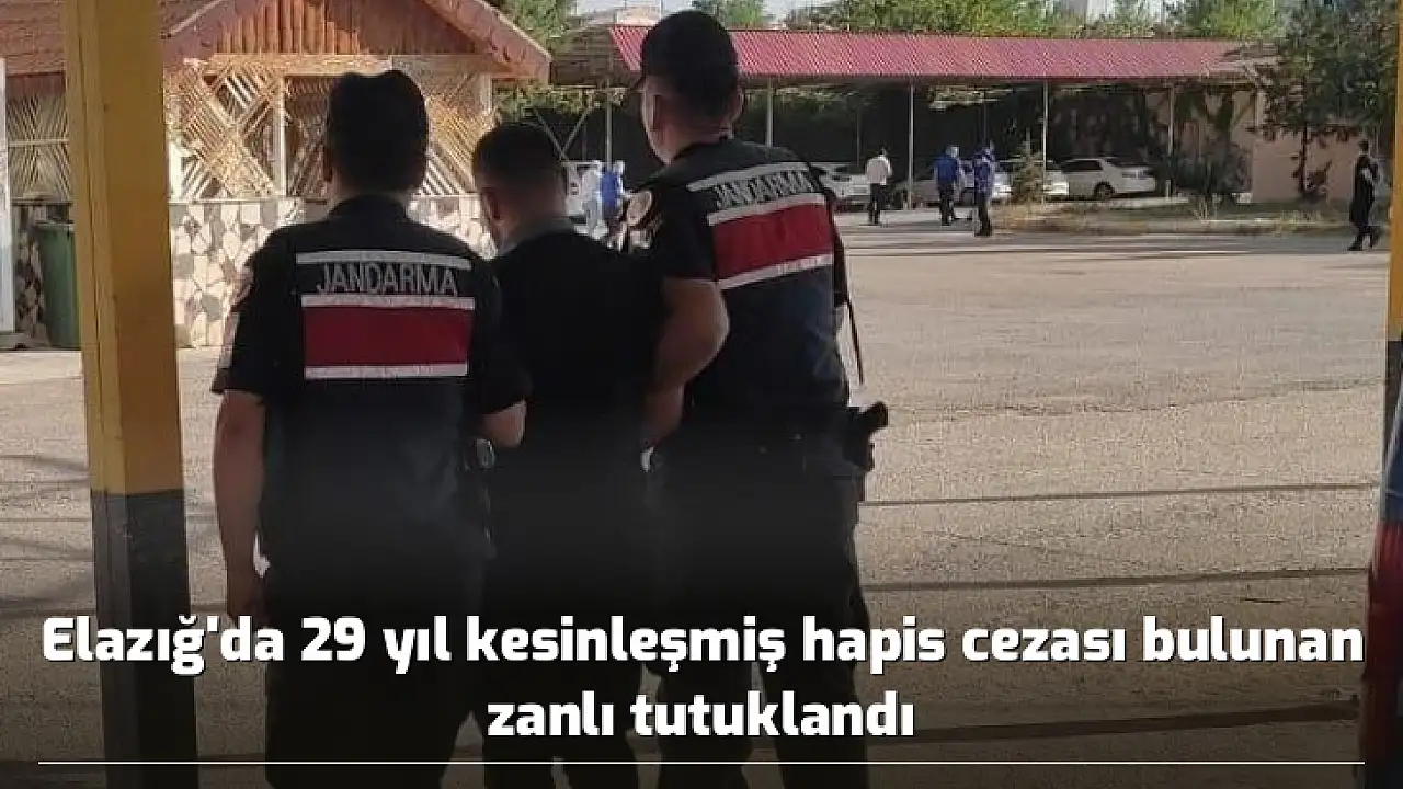 Elazığ'da jandarma ekiplerinin yaptığı çalışmada 29 yıl 9 ay 15 gün kesinleşmiş hapis cezası bulunan zanlı yakalandı. Adliyeye sevk edilen zanlı tutuklanarak cezaevine gönderildi.