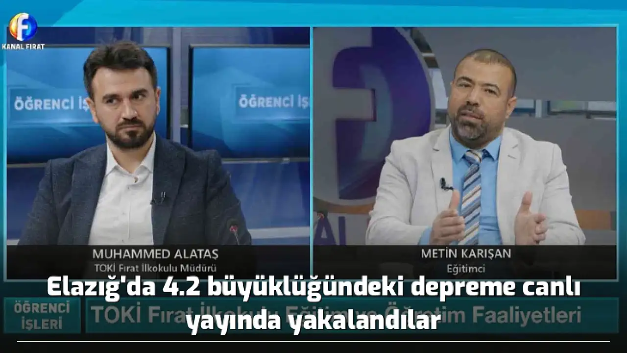 Elazığ'da 4.2 büyüklüğünde deprem meydana geldi. Depremle birlikte vatandaşlar sokağa dökülürken, kentte yerel bir televizyonda program yapanlar ise depreme canlı yayında yakalandı.