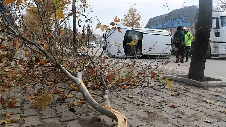 Elazığ'da ağaca çarpan otomobil yan yattı: 1 yaralı