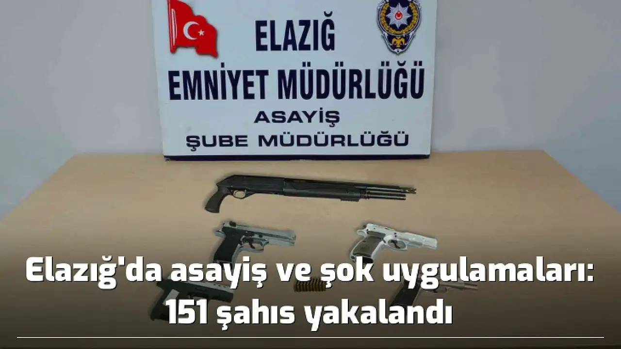 Elazığ İl Emniyet Müdürlüğü ekipleri tarafından gerçekleştirilen asayiş ve şok uygulamalarında 151 kişinin yakalandığı, bunlardan 21'inin sevk edildikleri adli mercilerce tutuklandığı belirtildi.