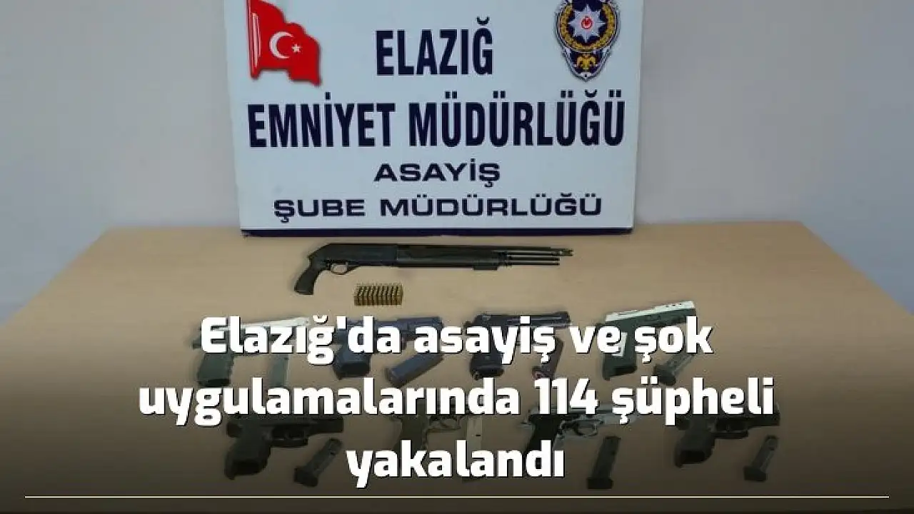 Elazığ'da İl Emniyet Müdürlüğü ekipleri tarafından son bir haftada gerçekleştirilen asayiş ve şok uygulamalarında 114 şüpheli yakalandı.