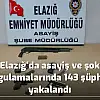 Elazığ'da İl Emniyet Müdürlüğü ekiplerince son bir hafta içinde gerçekleştirilen operasyonlarda 143 şüpheli yakalandı.