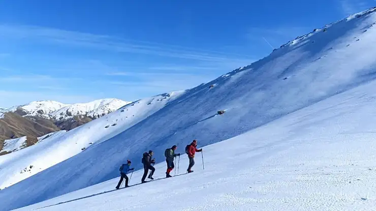 Elazığ'da dağcılar beyaza bürünen 2 bin 620 metre yüksekliğindeki Akdağ'a tırmandı