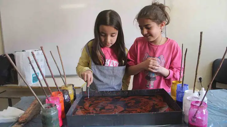 Elazığ'da ebru sanatı ile tanışan çocuklar büyük mutluluk yaşadı