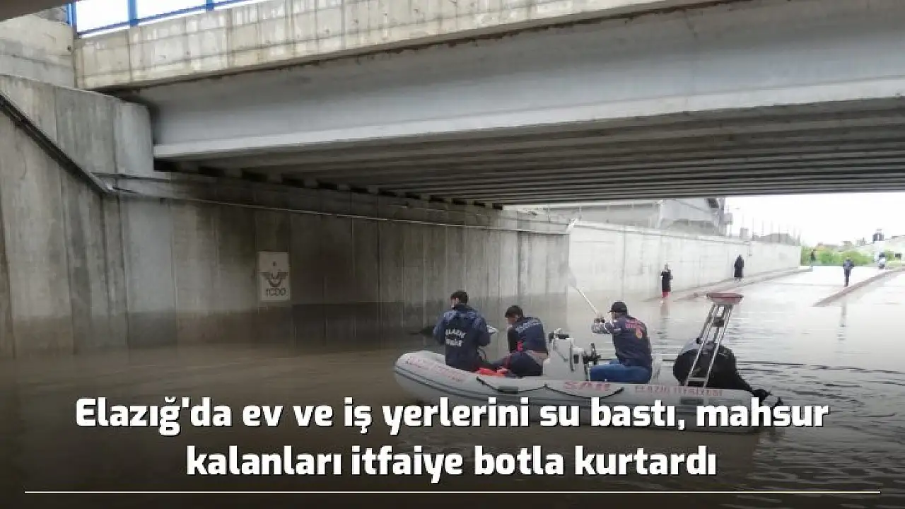Elazığ'da bir anda bastıran dolu ve sağanak yağış nedeniyle ev ve iş yerlerini su bastı. Alt geçitlerde araçlarıyla mahsur kalan vatandaşları itfaiye ekipleri botla kurtardı.