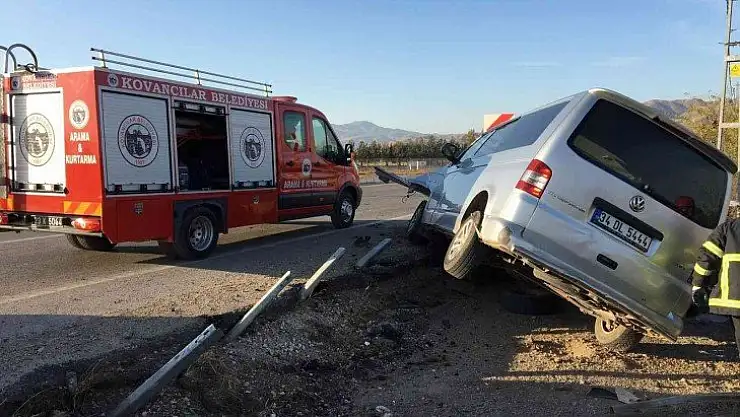 Elazığ'da sürücüsünün direksiyon hakimiyetini kaybettiği hafif ticari araç, bariyerlere çarparak durabildi. Kazada 2 kişi yaralandı.