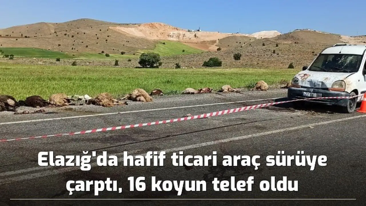 Elazığ-Çemişgezek Karayolunda hafif ticari araç, yoldan karşıya geçen koyun sürüsüne çarptı. Kazada sürücü hafif yaralanırken, 16 adet koyun telef oldu.