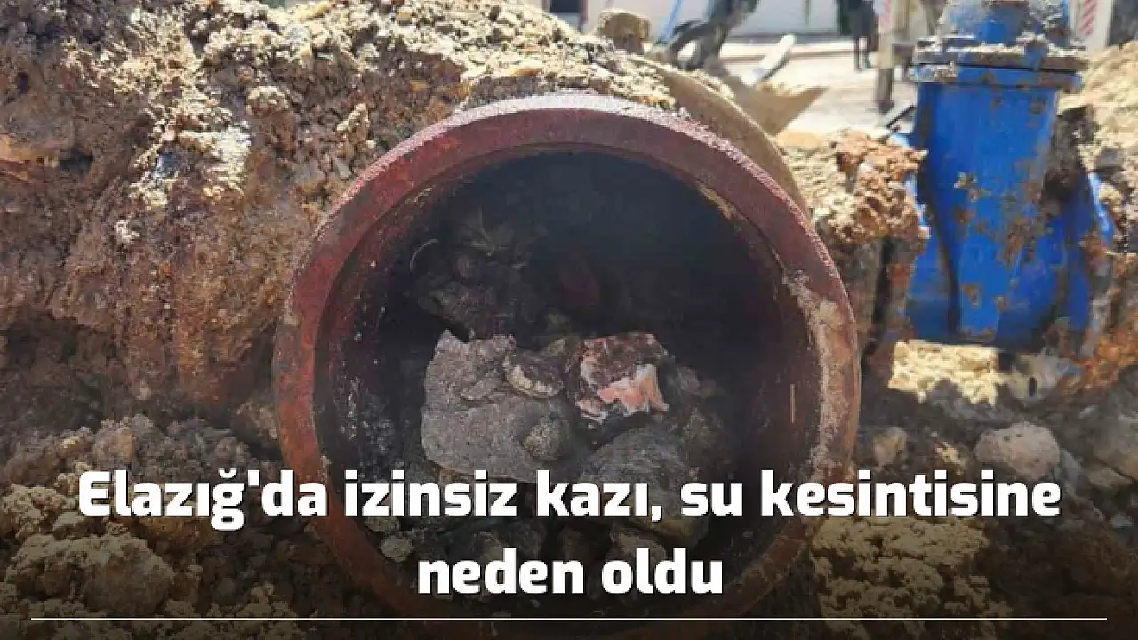 Elazığ'da izinsiz kazı nedeniyle su kesintisi meydana gelirken, belediye ekipleri tarafından tıkanan borular açıldı ve ilgililer hakkında yasal işlem başlatıldı .