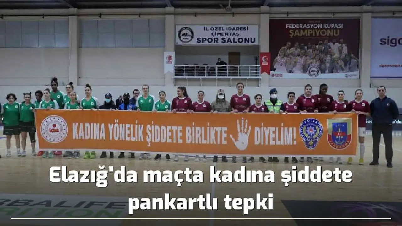 Elazığ İl Jandarma Komutanlığı ve İl Emniyet Müdürlüğü ekipleri, sporcularla birlikte basket maçı öncesi 'Kadına Yönelik Şiddette Birlikte Dur Diyelim' pankartı açtı.