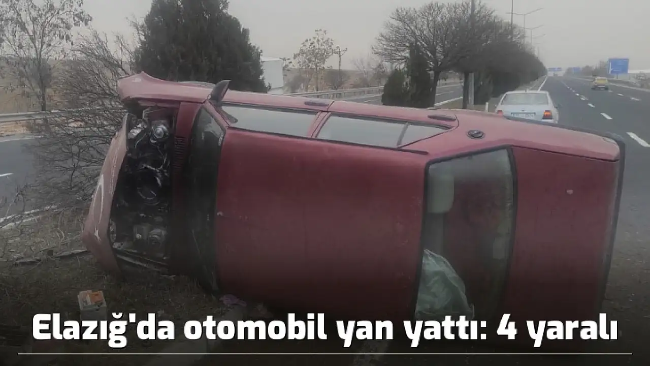 Elazığ'da sürücüsünün direksiyon hakimiyetini kaybettiği otomobil yan yattı. Kazada 4 kişi yaralandı.
