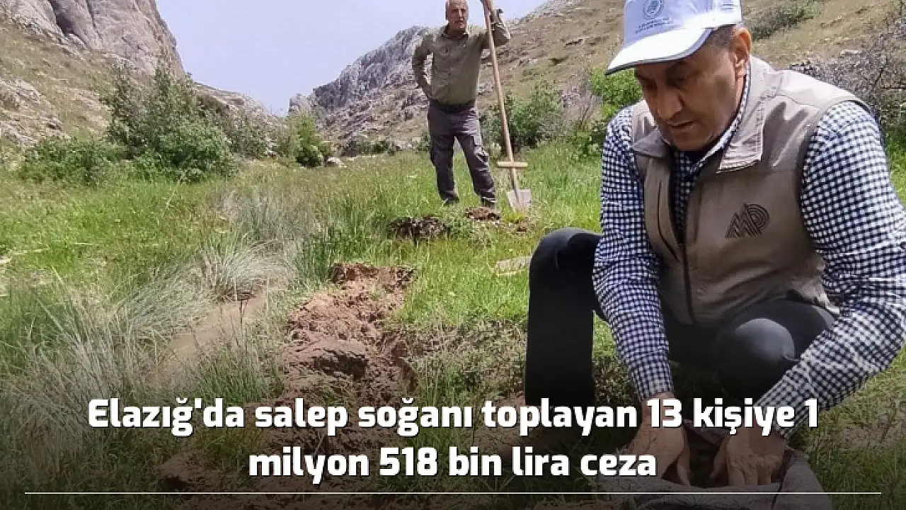 Elazığ'da son bir ayda doğadan salep soğanı toplayarak biyoçeşitliliğe zarar veren toplam 13 kişiye, 1 milyon 518 bin lira para cezası kesildi.