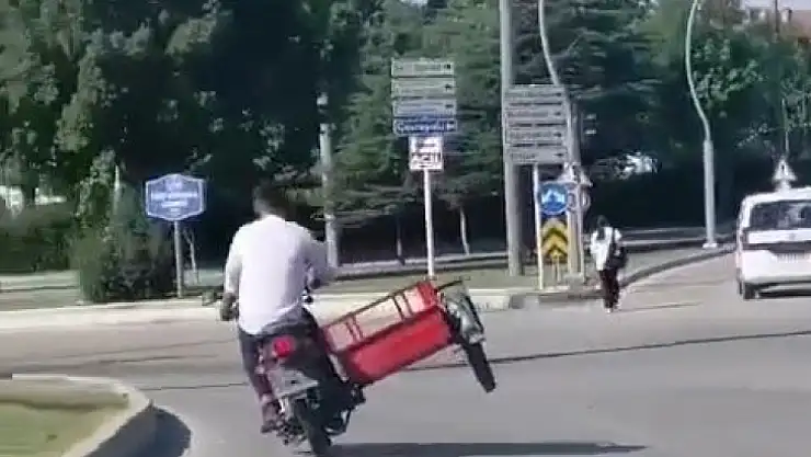 Olay, merkeze bağlı İtfaiye kavşağında meydana geldi. Edinilen bilgiye göre, sepetli motosikleti, trafiği tehlikeye atarak seyir halindeyken sepetin olduğu kısmı kaldırarak ilerlemeye devam etti. O anlar bir başka sürücünün cep telefonu kamerasına yansıdı. Sepetli motosiklet sürücüsü, bir süre sonra gözden kayboldu.