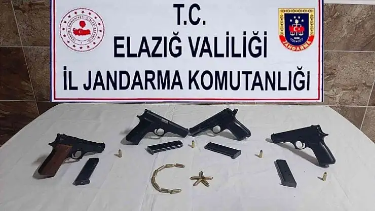 Elazığ'da jandarma ekiplerinin, kent genelinde silah kaçakçılarına yönelik başlattığı operasyonlarda 4 adet ruhsatsız tabanca ele geçirildi. Operasyonlarda 2 şüpheli gözaltına alındı.
