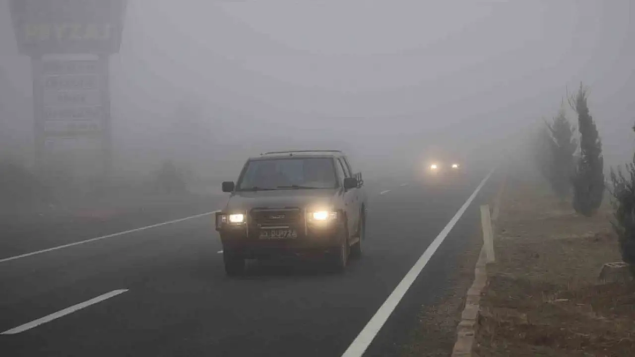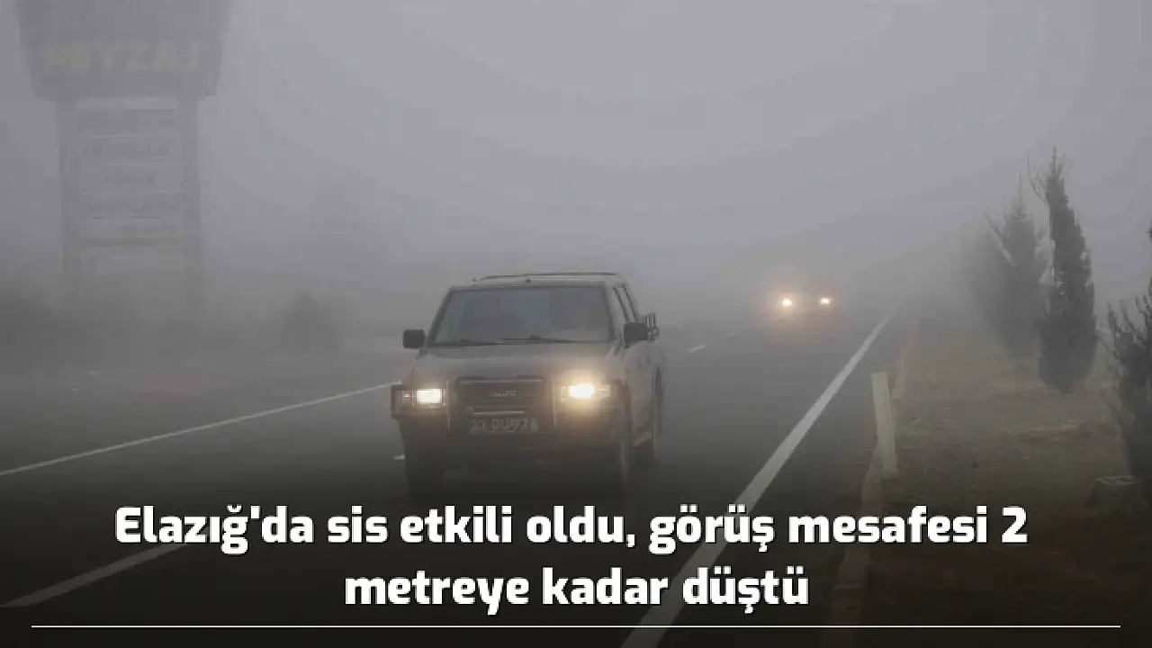 Elazığ'da yoğun sis etkili olurken görüş mesafesi 2 metreye kadar düştü. Araçlar sis arasında kaybolurken sürücüler düşük hızda ve araçlarının dörtlülerini yakarak seyretti.