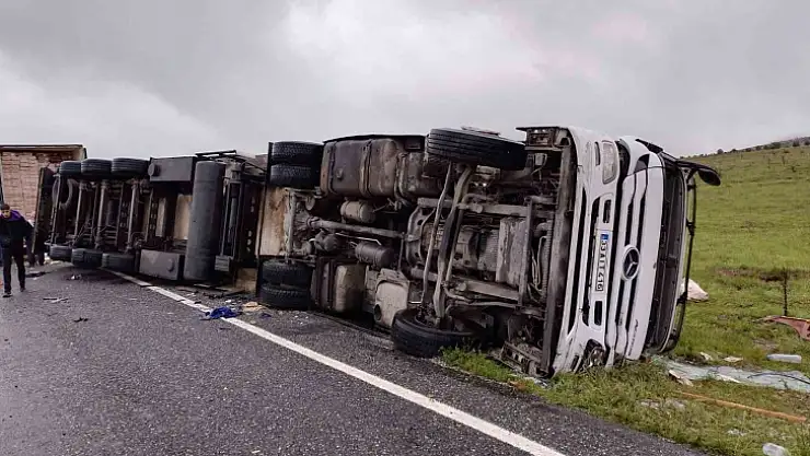 Elazığ'da sürücüsünün direksiyon hakimiyetini kaybettiği tırın yan yatması sonucu meydana gelen trafik kazasında 1 kişi yaralandı.