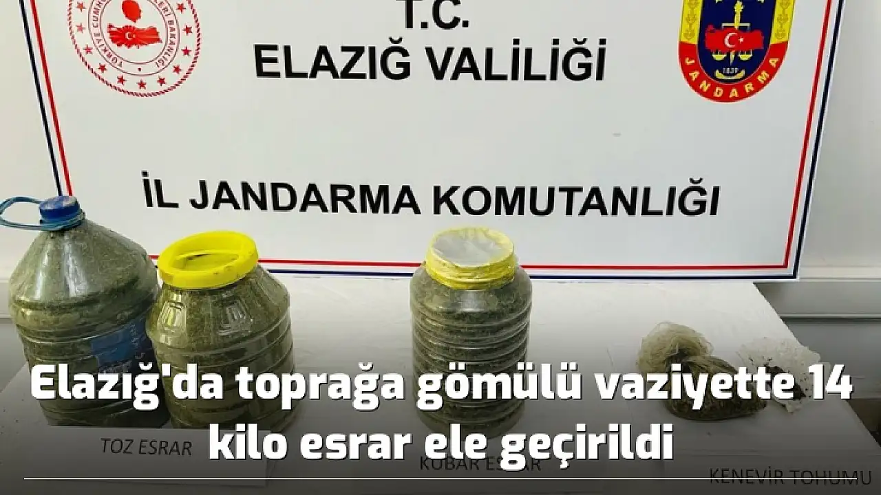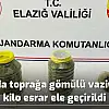 Elazığ'da jandarma ekiplerince gerçekleştirilen operasyonda, toprağa gömülü vaziyette 14 kilo esrar ele geçirildi.