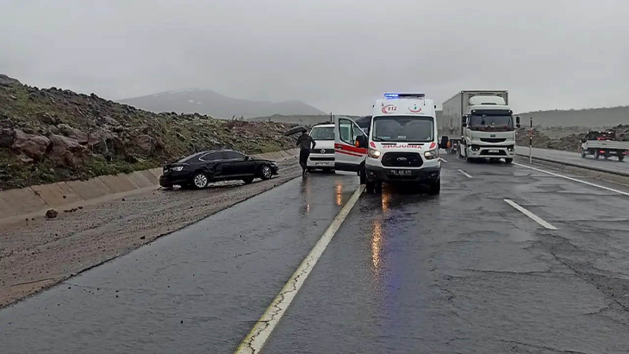 Elazığ'da dolu yağışından dolayı kayganlaşan yolda, sürücüsünün direksiyon hakimiyetini kaybettiği otomobil yoldan çıktı. Kazada 4 kişi yaralandı.
