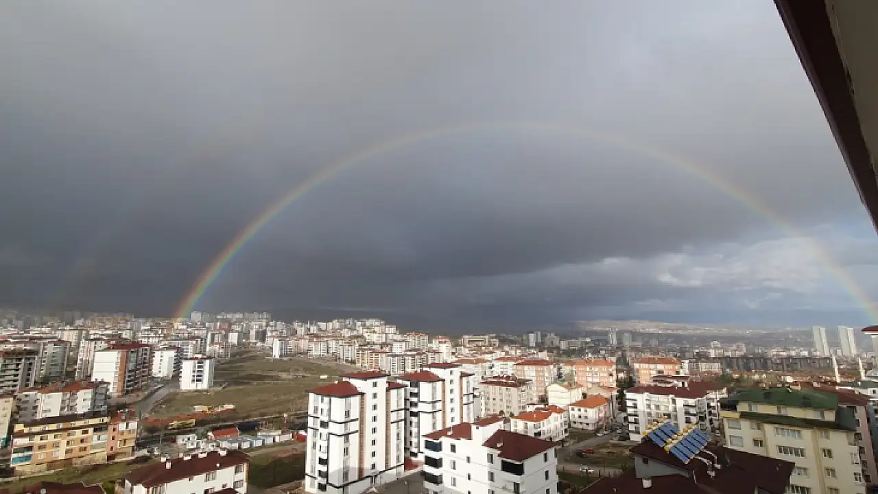 Elazığ'da yağmur sonrası ortaya çıkan gökkuşağı görsel şölen oluşturdu.