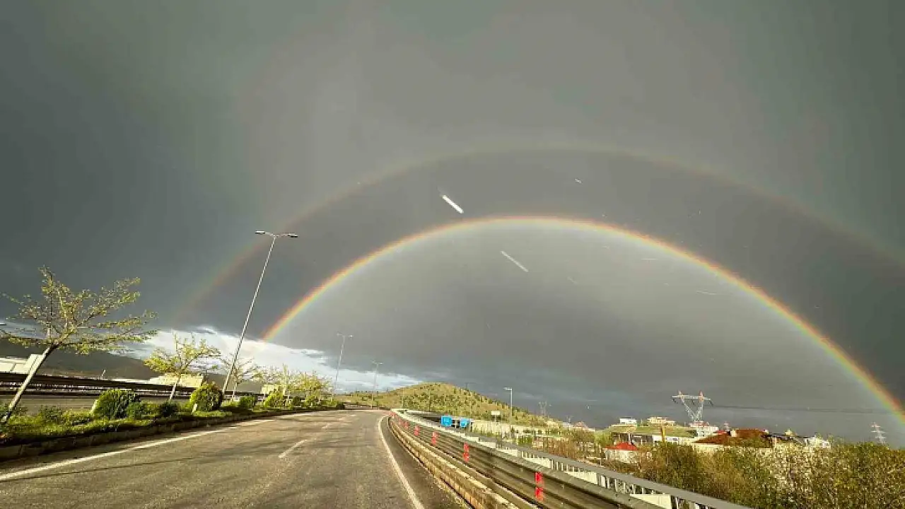 Elazığ’da yağmur sonrası ortaya çıkan gökkuşağı izleyenleri hayran bıraktı.