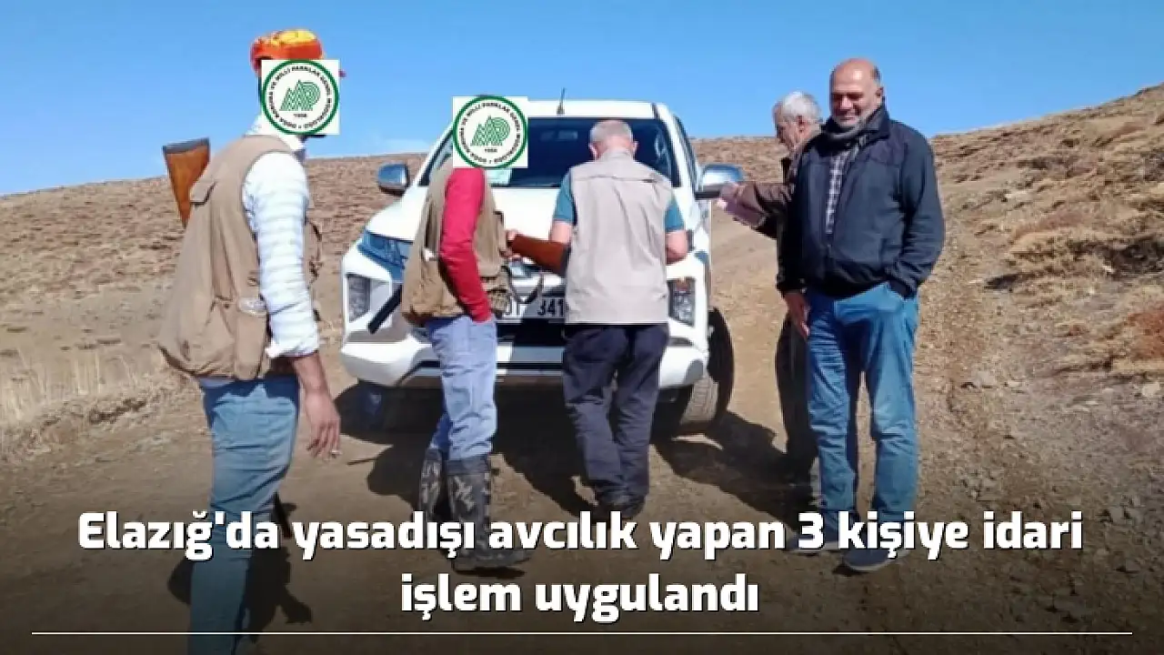Edinilen bilgiye göre, Doğa Koruma ve Milli Parklar Elazığ Şubesi ekipleri tarafından av koruma ve kontrol çalışmaları gerçekleştirildi. Çalışmalar çerçevesinde 4915 sayılı Kara Avcılığı Kanununa aykırı olarak yasadışı avcılık yapan 3 kişi hakkında idari işlem yapıldı.