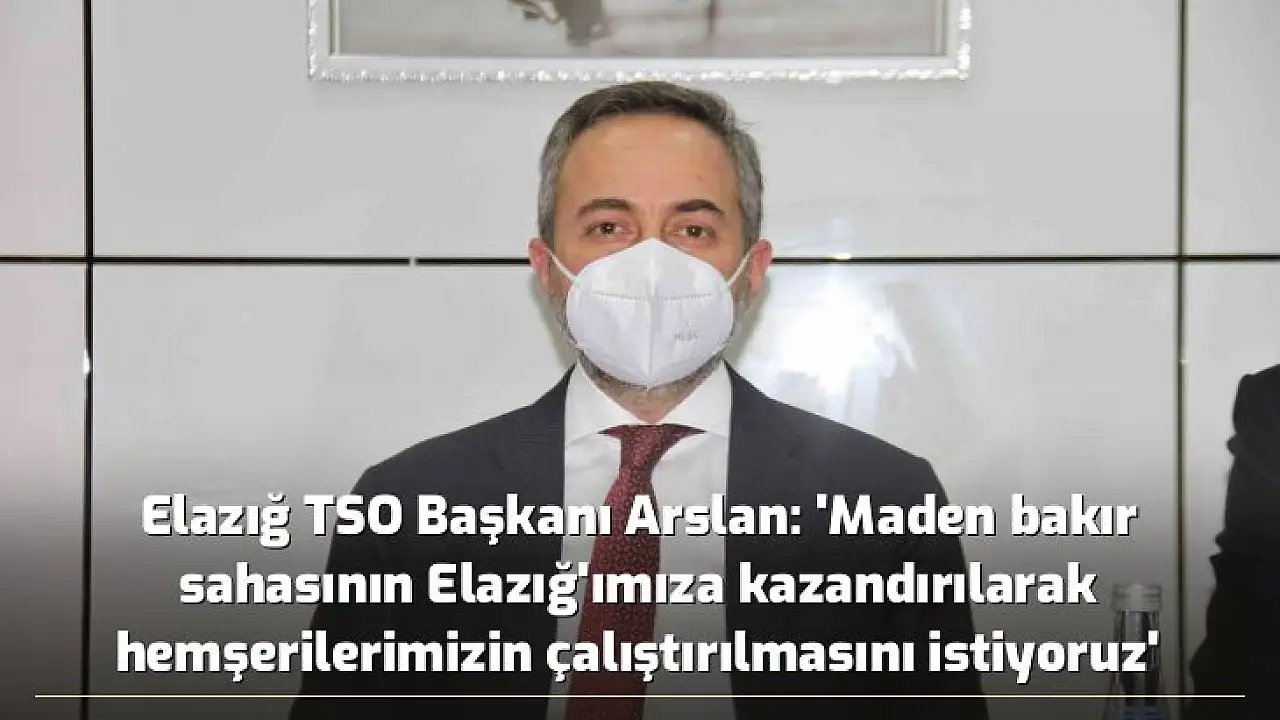 - Elazığ TSO Başkanı Arslan: 'Maden bakır sahasının Elazığ'ımıza kazandırılarak hemşerilerimizin çalıştırılmasını istiyoruz'