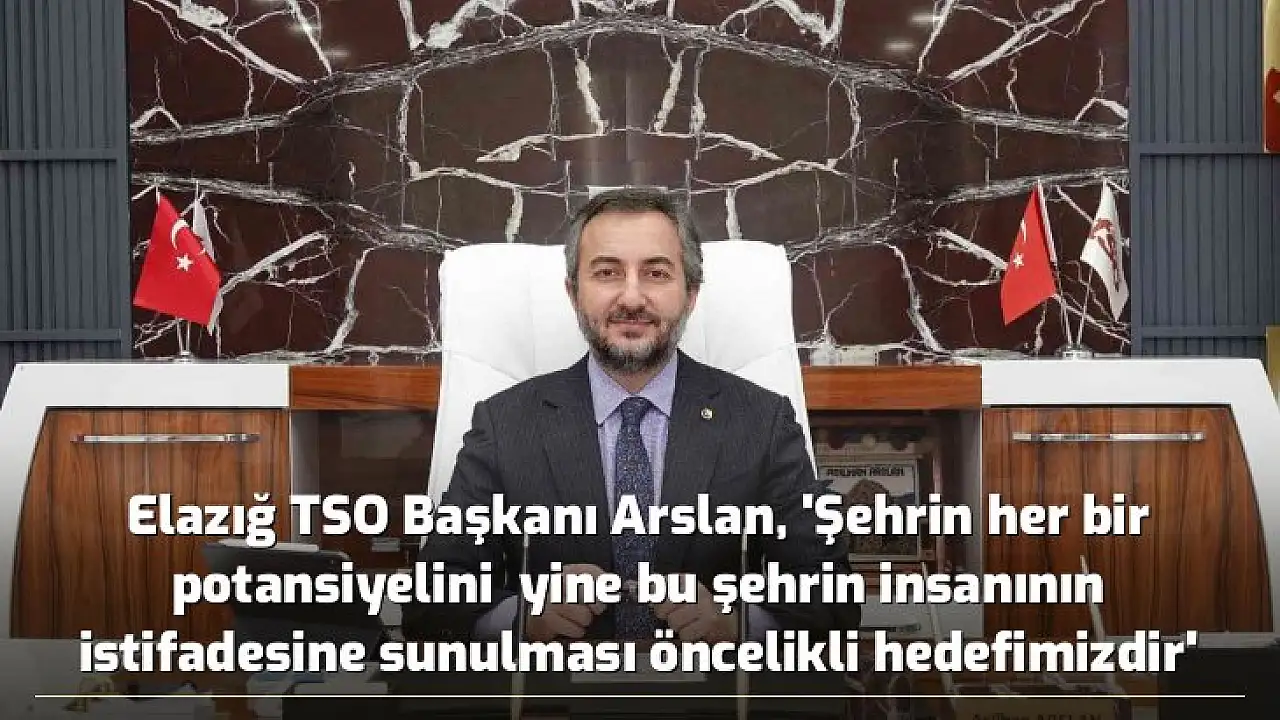 - Elazığ TSO Başkanı Arslan, 'Şehrin her bir potansiyelini yine bu şehrin insanının istifadesine sunulması öncelikli hedefimizdir'