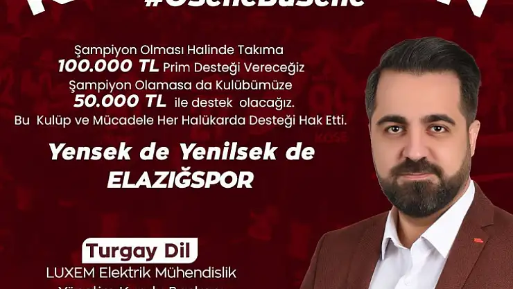 İş adamı Turgay Dil, Elazığspor'un şampiyon olması halinde takıma 100 bin liralık prim dağıtacakları sözü verdi.
