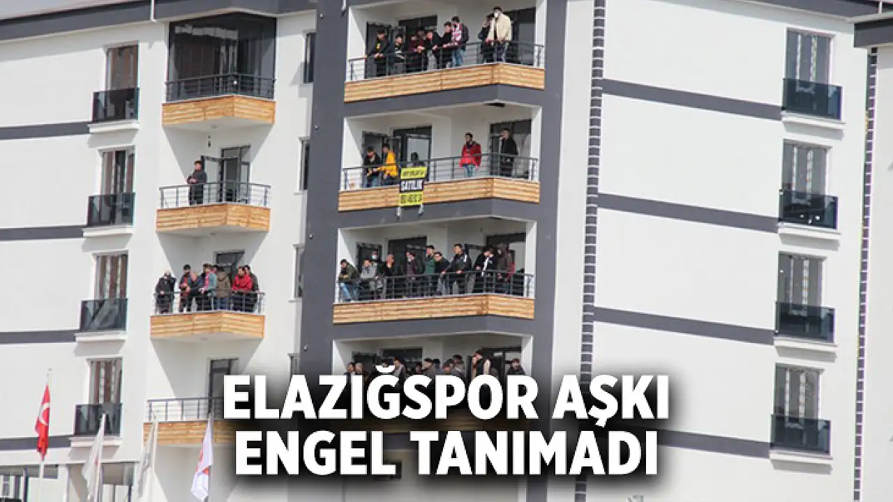 Elazığsporlu taraftarlar, cezaları nedeniyle tribünde yer alamadıkları maçı bir inşaatın balkonundan izledi.
