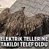 Edinilen bilgilere göre, nesli tükenme tehlikesiyle karşı karşıya kalan akbaba, merkez mahallede elektrik tellerine çarptı.