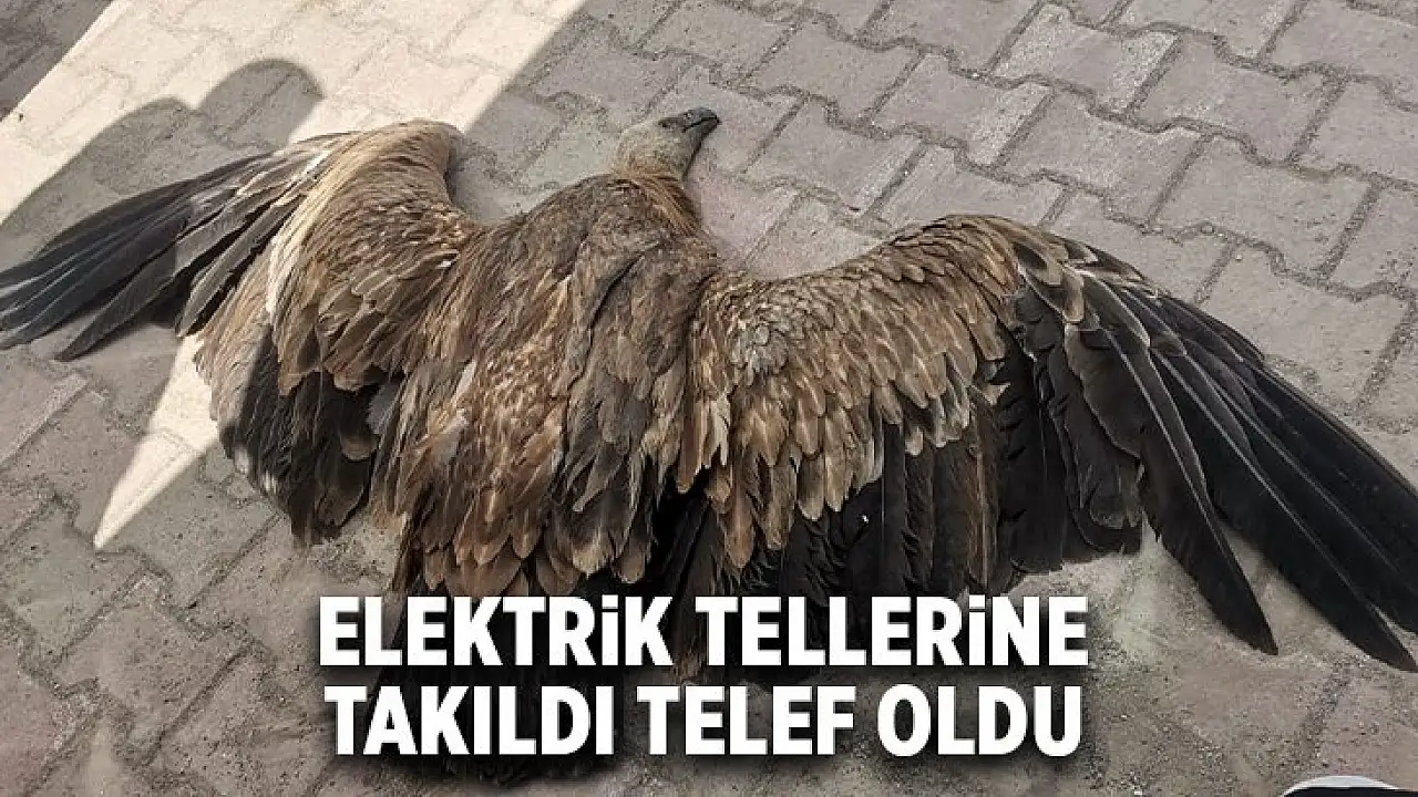 Elazığ'da elektrik tellerine takılan akbaba, akıma kapılması sonucu telef oldu.
