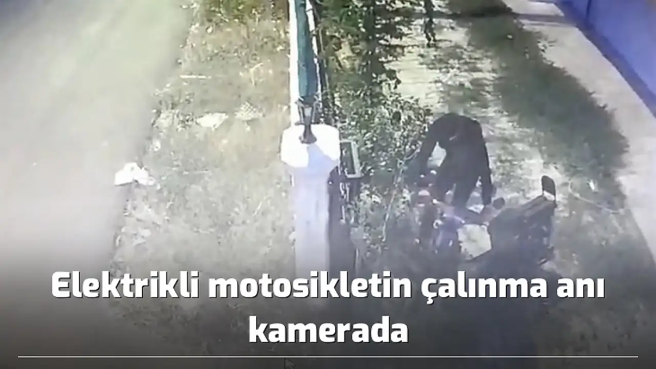 Elazığ'da sokak üzerinde direğe bağlı bulunan elektrikli motosikletin çalınma anı güvenlik kamerasına yansıdı.