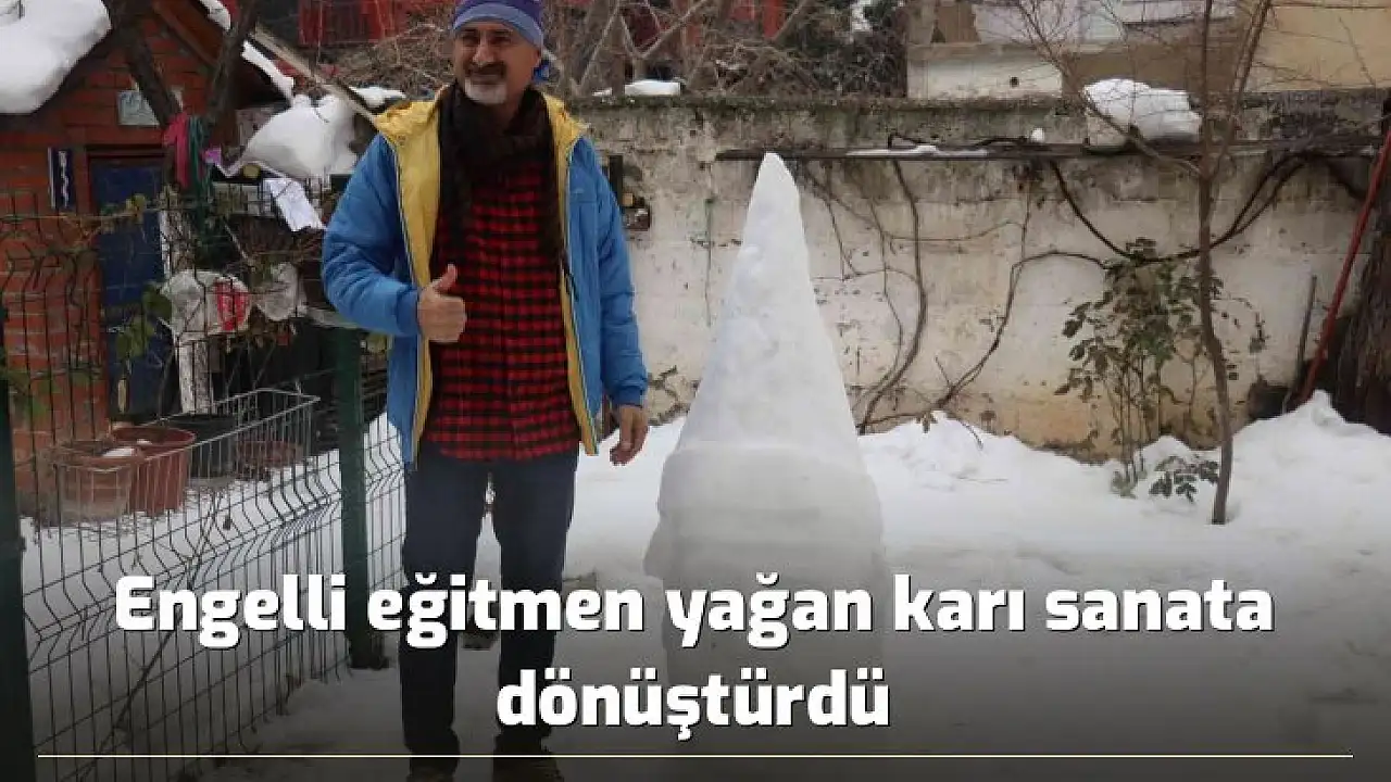 Engelli eğitmen yağan karı sanata dönüştürdü