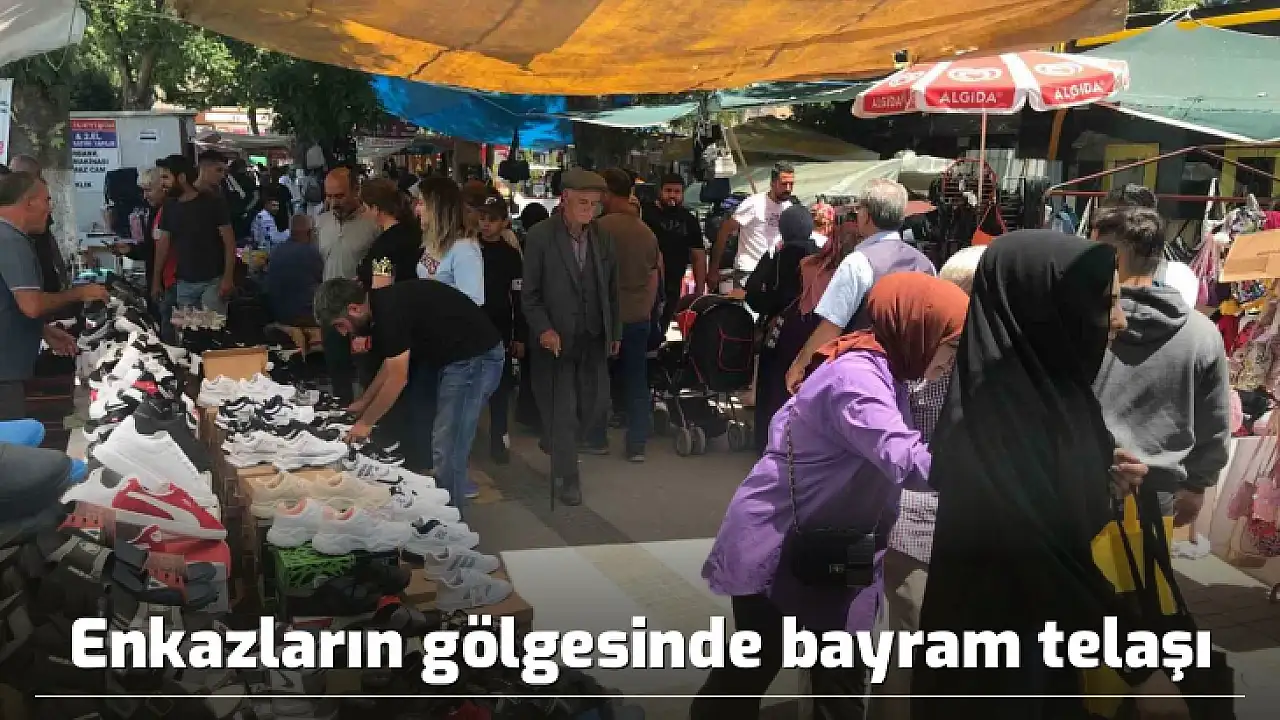 Deprem bölgesinde işyerleri yıkılan esnaflar kent merkezinde kurdukları tezgahlar ile bayram öncesi satışlarını sürdürüyor.