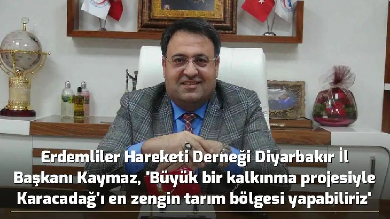 - Erdemliler Hareketi Derneği Diyarbakır İl Başkanı Kaymaz, 'Büyük bir kalkınma projesiyle Karacadağ'ı en zengin tarım bölgesi yapabiliriz'