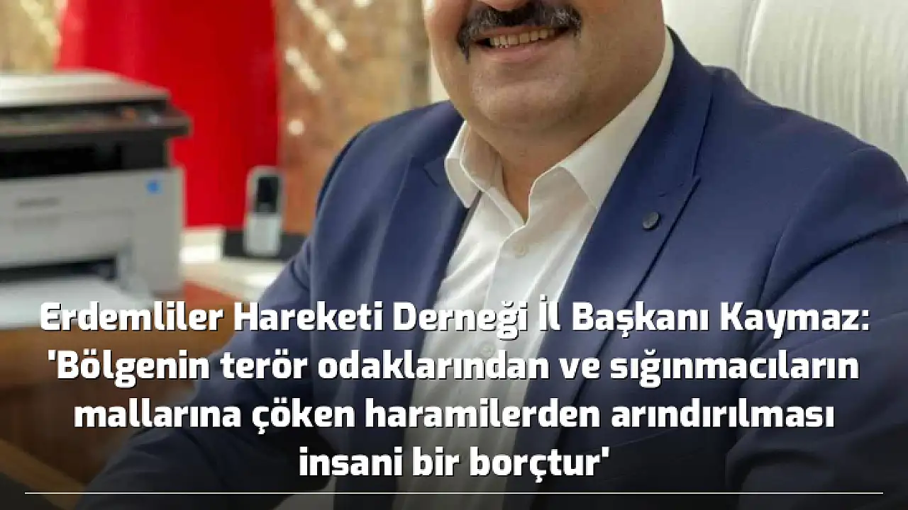 - Erdemliler Hareketi Derneği İl Başkanı Kaymaz: 'Bölgenin terör odaklarından ve sığınmacıların mallarına çöken haramilerden arındırılması insani bir borçtur'