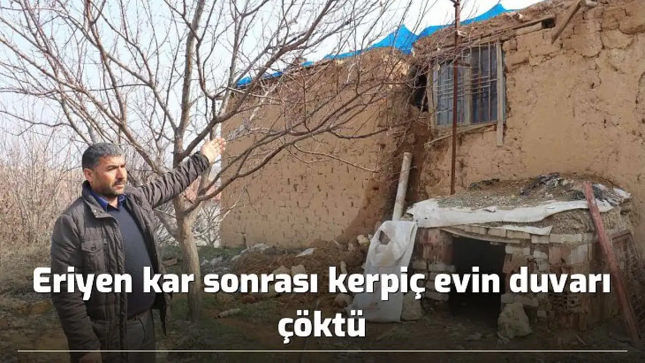 Malatya'da tek katlı kerpiç bir evin duvarı eriyen kar suyu nedeniyle çöktü.