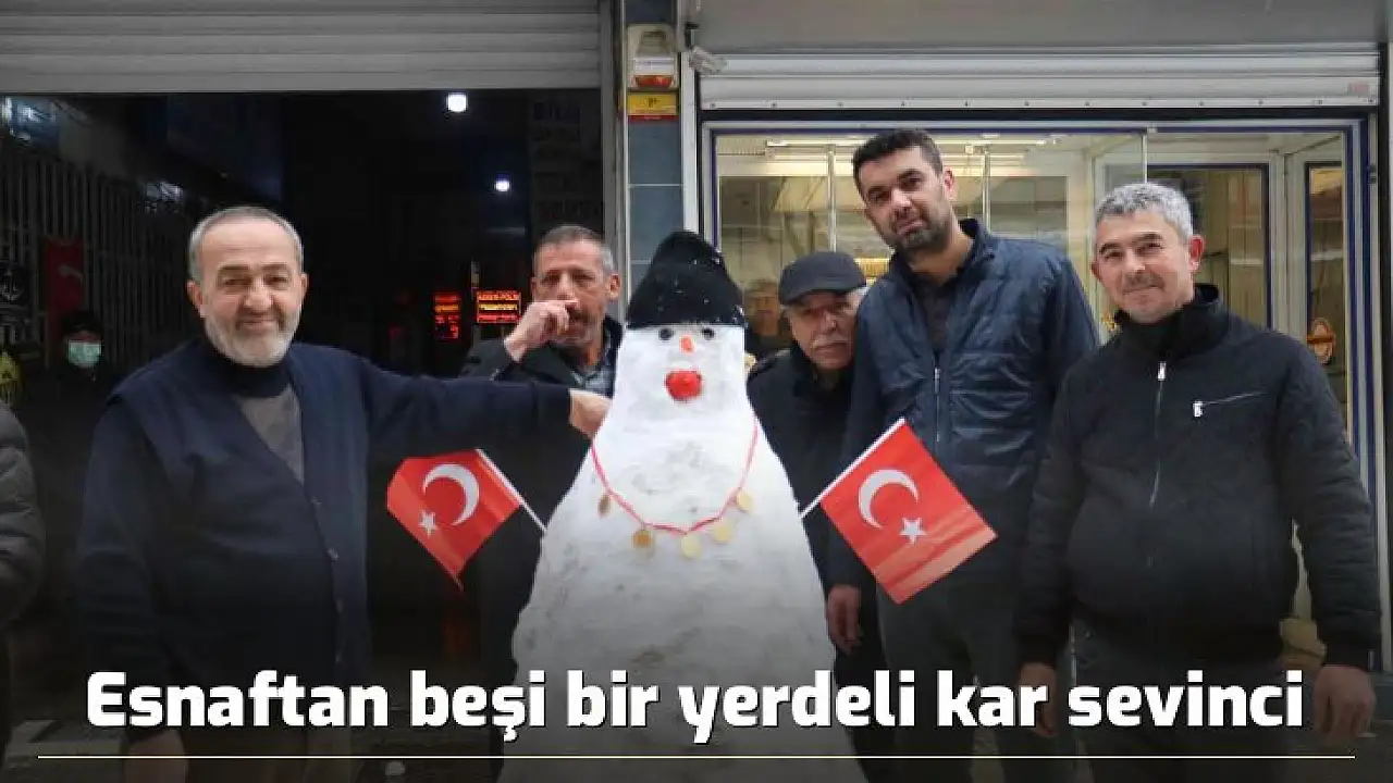 Son yılların en etkili kar yağışı ile karşı karşıya kalan Malatya'da kar sevinci yaşayan esnaf, yaptığı kardan adama beşi bir yerde altın taktı.